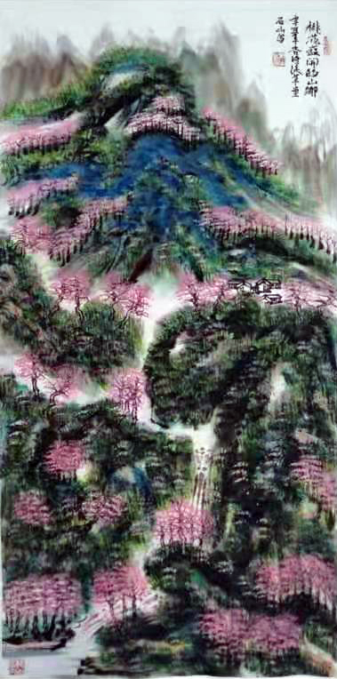 《桃花盛开的山乡》