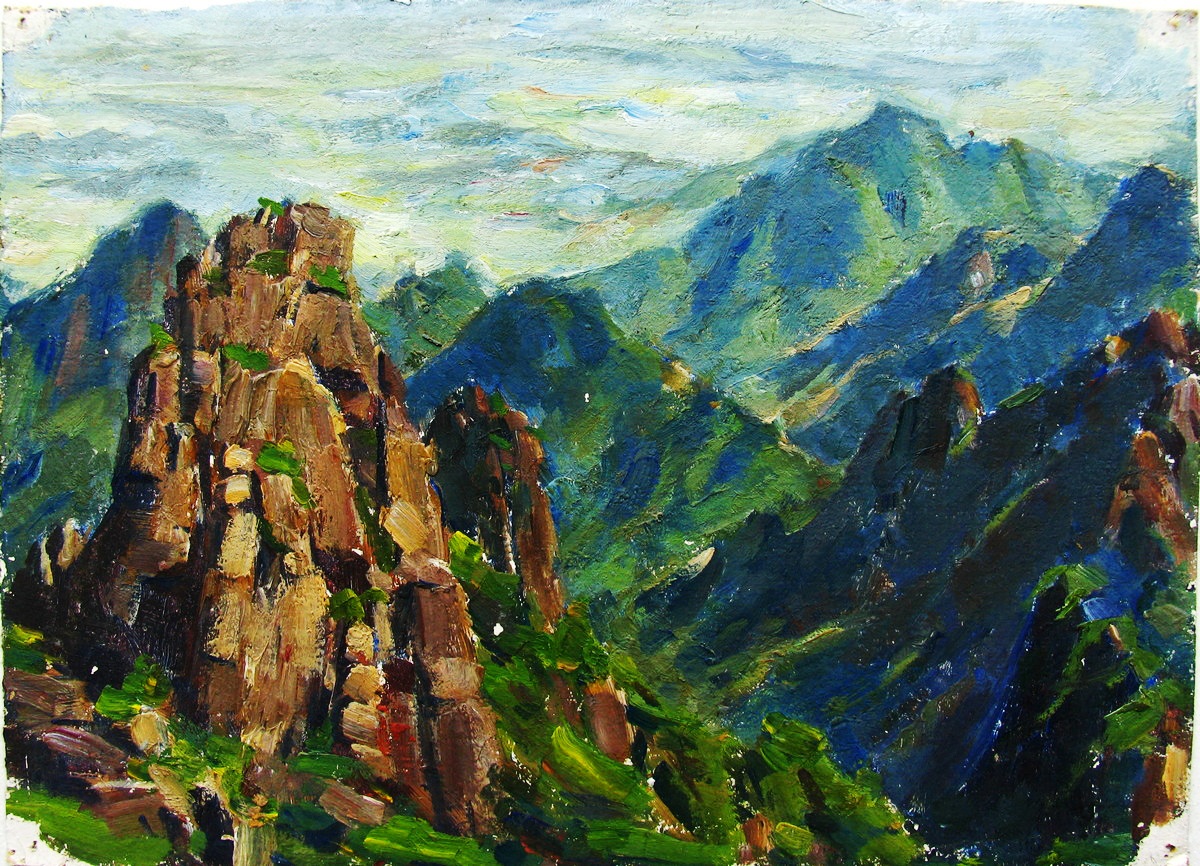 《夏日黄山》卡纸油画06 1979年