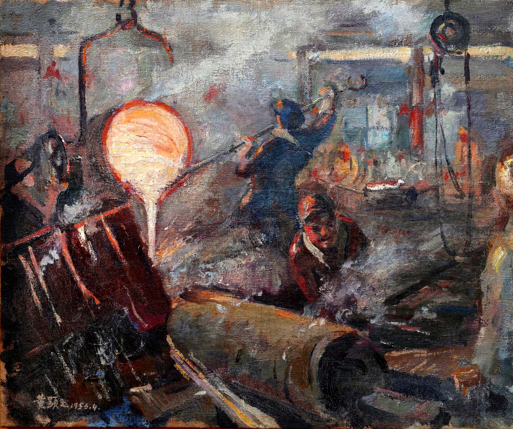 《南京汽车制造厂铸造车间》布面油画1956年4月二次创作