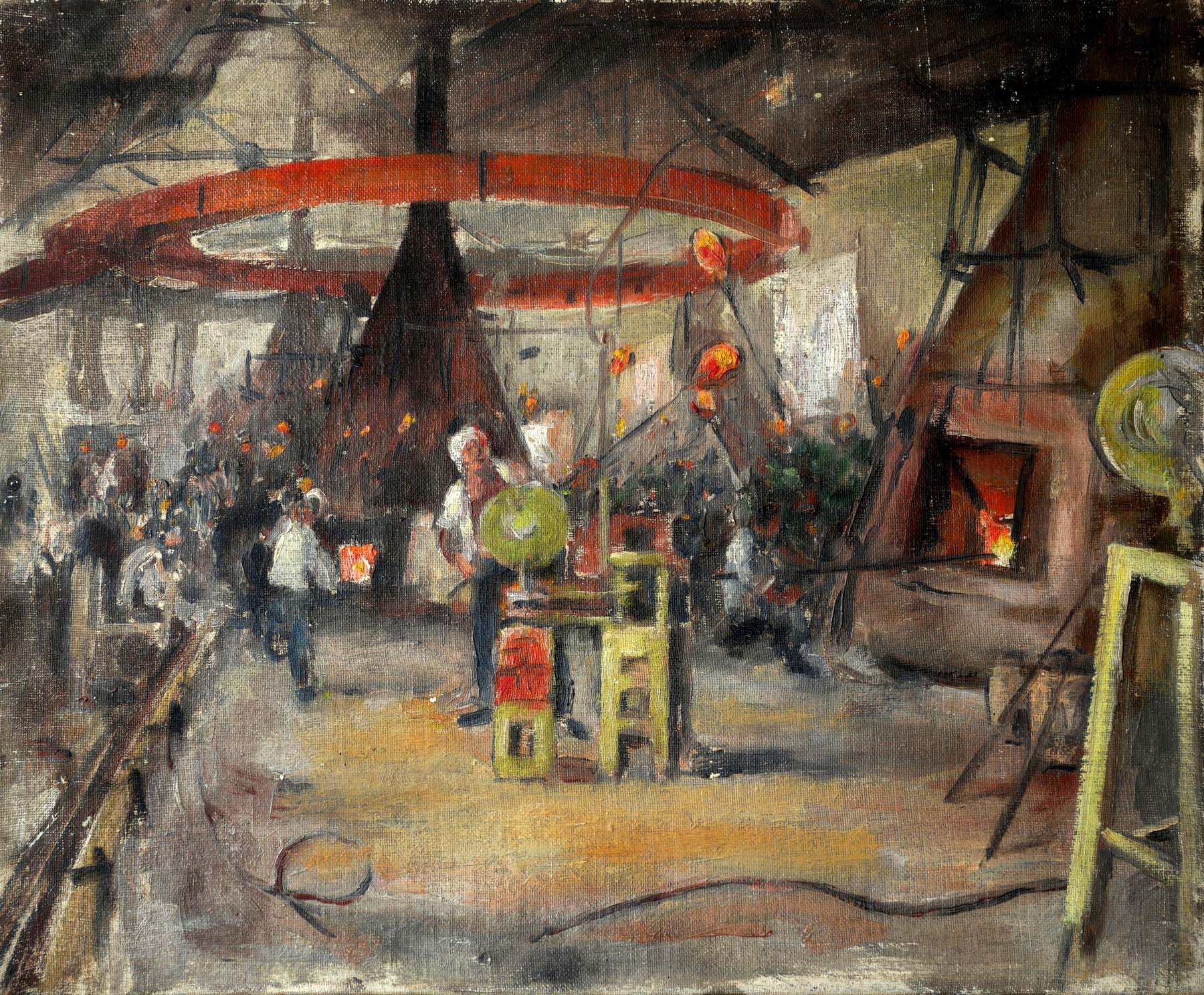 《南京灯泡厂一车间》布面油画1958年