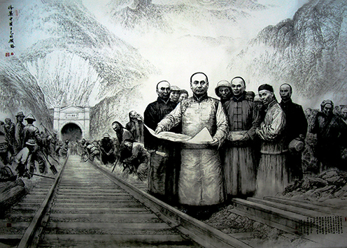 著名国画名家-梁振雄作品《修筑中国自己的铁路》340cm×240cm 2010-2011年