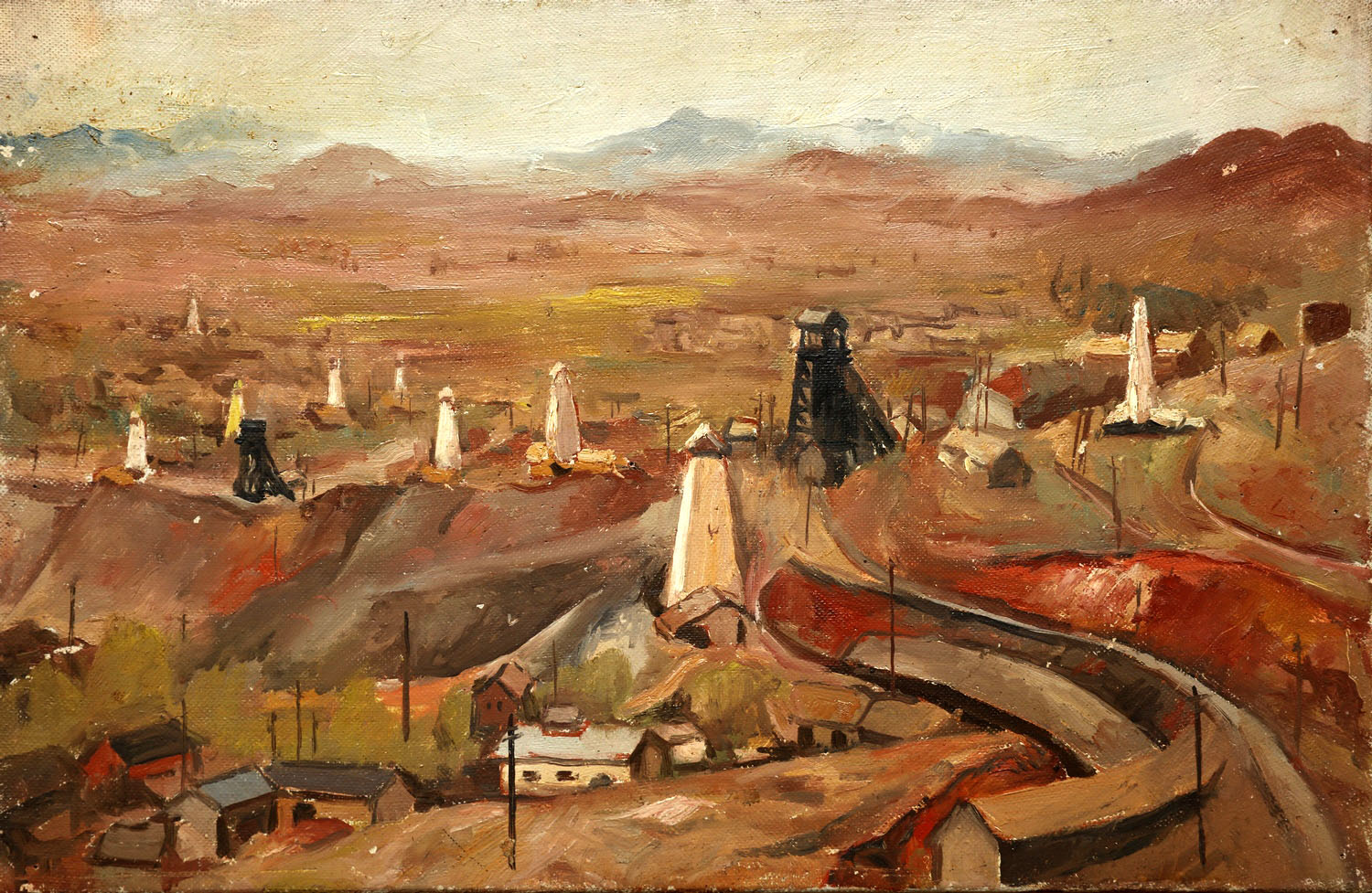 《向山钻探机群》 三合板纱布面油画 1958年